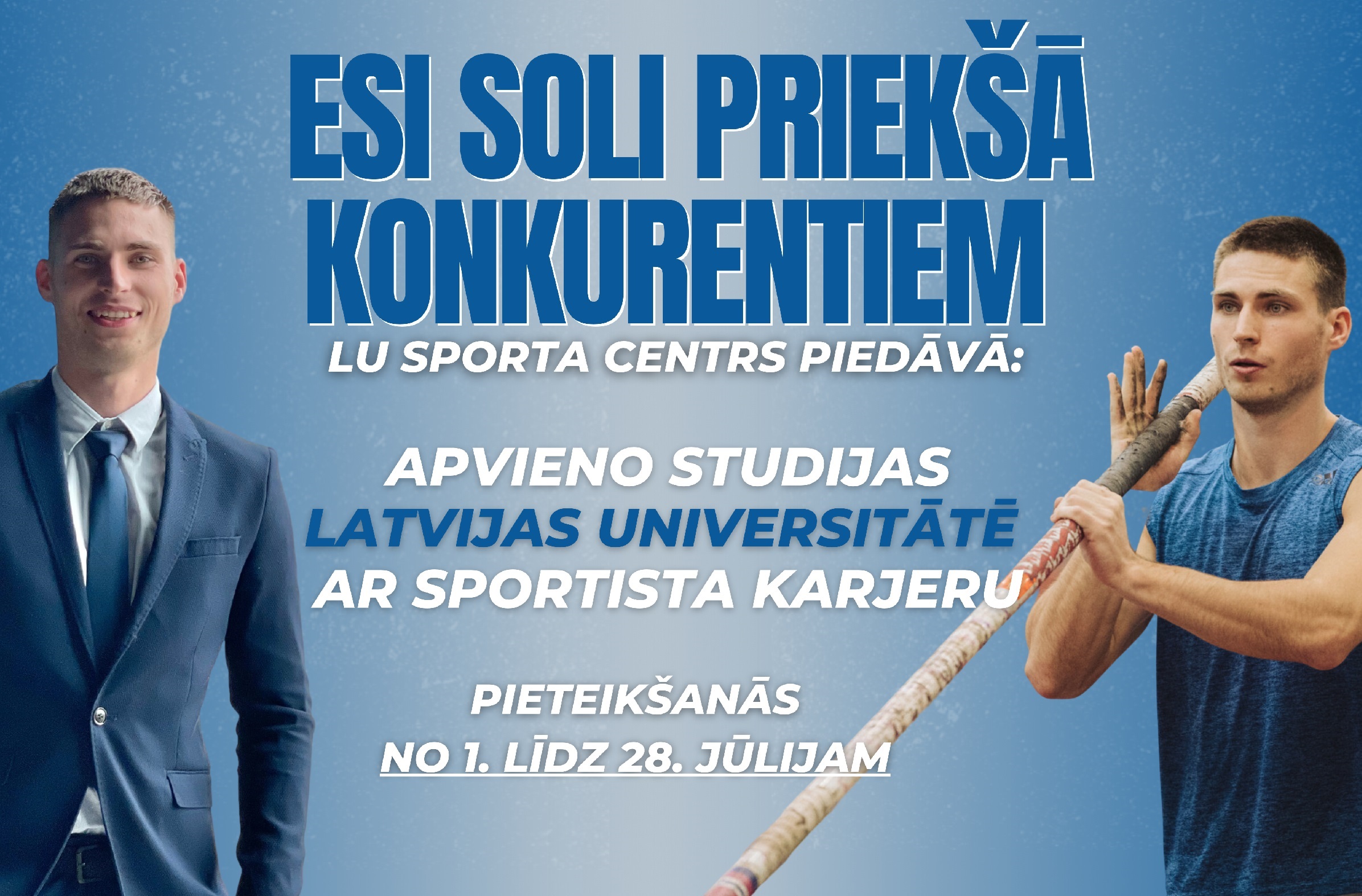 Latvijas Universitāte (turpmāk – LU) jau vairākus gadus atbalsta augsta līmeņa sportistus, piešķirot sporta stipendijas studijām augstskolā, lai dotu iespēju gūtu panākumu ne tikai sportā, bet arī mācībās. Šogad pieteikšanās “Duālās karjeras” sporta stipendijai studiju maksas segšanai norisināsies no 1. jūlija līdz 28. jūlijam.