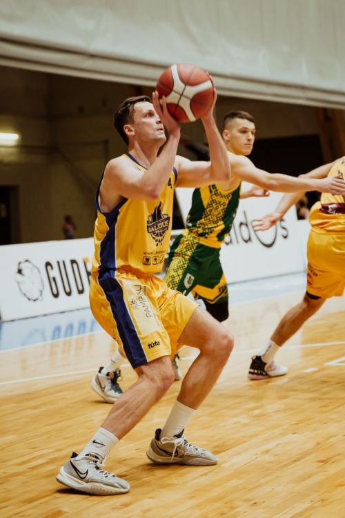 Līderu duelī Kandava saspringtā galotnē pārspēj Saldus basketbolistus