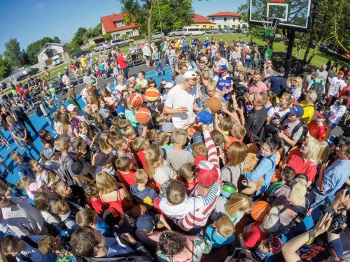 Sportland pirmie soļi basketbolā: Rīgas Centra humanitārās vidusskolas pirmklasnieki satiek Kristapu Porziņģi