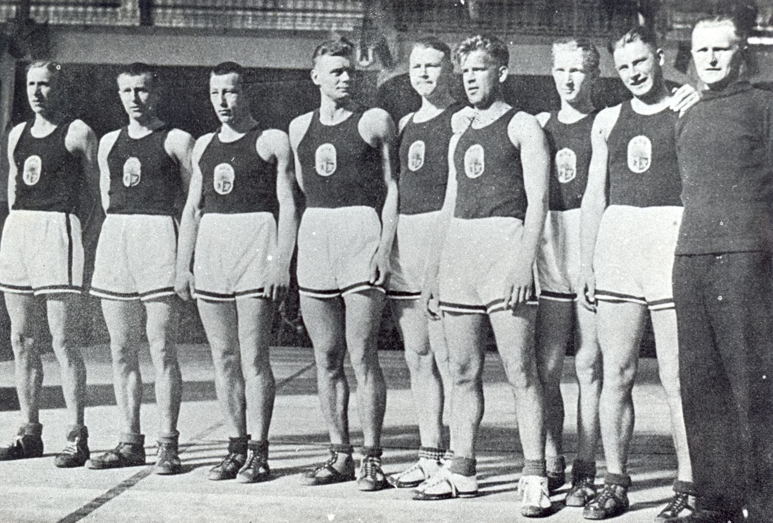 1935.gada 4.maijā Ženēvā pirmajā Eiropas čempionātā basketbolā finālspēlē Latvijas valstsvienība ar 24:18 (16:8) pārspēja Spānijas izlasi. Basketbola vēsturē tika ierakstīti pirmie čempioni (attēlā no kreisās): Mārtiņš Grundmanis, Džems Raudziņš, Aleksejs Anufrijevs, Rūdolfs Jurciņš, Visvaldis Melderis, Jānis Lidmanis, Herberts Gubiņš un Eduards Andersons. Treneris – Valdemārs Baumanis.